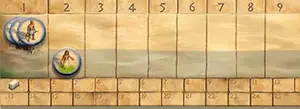When a player moves his marker, in the course of the game, to the lowest space, he adds 3 stones to his tableau.
