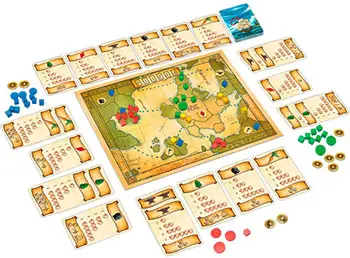 The player who has the most victory points from regions, continents, and goods has the most powerful empire and is the winner! If players are tied, the player with the most coins wins. If still tied, the player with the most armies on the board wins. If still tied, the player with the most controlled regions wins.