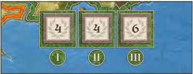 Shuffle the Glory tokens face down, and randomly place one face up in each Glory space on the game board (three tokens per Kingdom). Then, within each Kingdom, arrange the three tokens in ascending order, with the lowest token in the "I" space and the highest in the "III" space.