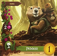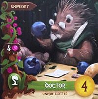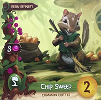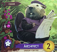 When playing a Critter or Construction, you may replace 1 of any resource in the cost with 1 of any other resource you have. Example: If a card costs 2 berries, you may pay 1 berry and 1 twig instead.