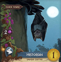 Draw 1 card after you play a Critter or Construction-basically every time you play a card after you have this Historian, you get to draw a card.