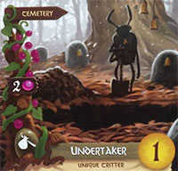 When played, discard 3 of the Meadow cards, replenish those 3 cards, then draw 1 card from the Meadow cards into your hand. Also unlocks the 2nd Cemetery plot.