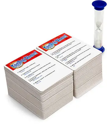 However, you must answer all 10 questions correctly before time runs out. Go 10 for 10 in 60-seconds and you win that card. Earn 3 cards first to win the game! (For team play, earn 5 cards first to win)
