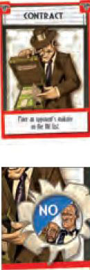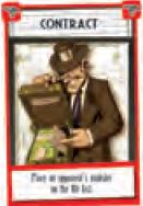 The Contract card is the basic card in the game. When you play a Contract on another player, he must choose one of his mobsters and add him to the Hit List.