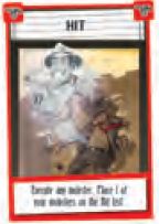A Hit allows you to immediately eliminate any 1 mobster in play, whether or not that mobster is on the Hit List. However, you must add 1 of your own mobsters to the Hit List.