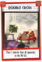 The Double Cross card allows you to collect 1 mobster from each opponent and add them all to the Hit List in any order that you choose.