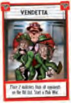 A Vendetta allows you to select 2 mobsters from each opponent and add them all to the Hit List, in any order you choose. Then, a Mob War starts (or continues, if a Mob War was already in effect), with 2 mobsters killed at the beginning of each player's turn.