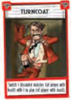 The Turncoat lets you switch a mobster in play (on the Hit List or in front of a player) with a mobster from the discard pile.