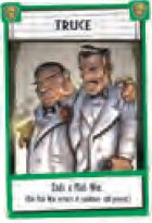 The Truce card stops a Mob War. Note that if the conditions still exist to trigger a Mob War (6 or more mobsters, or 6 or fewer mobsters left in play), a Mob War (at the rate of 1 hit per turn) would immediately restart.