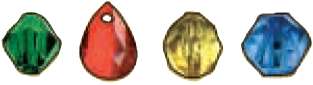 The player takes: »4 green glass beads«; »3 red glass beads«; »2 yellow glass beads«; »1 blue glass bead«; »one glass bead of each color«