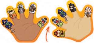 Find a match for each of the characters on the card in front of you before any other player. You have to match the characters, in order, from thumb to pinky.