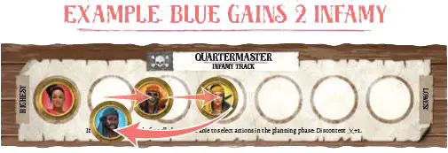 , the Quartermaster must move that player's infamy marker higher or lower on the infamy track accordingly, shifting other players' markers to make room.