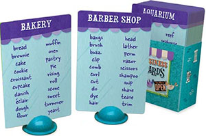 Each Business card features a type of business at the top, along with a far-from-exhaustive list of related words to help you brainstorm.