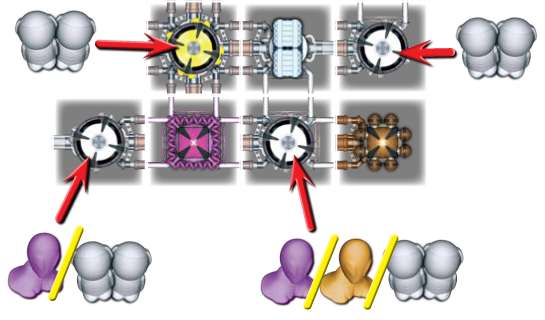 But, before taking that tile, double-check to be sure your ship is built according to the rules. In your first game, we can be lenient. If you see a mistake, just remove a component so that it no longer violates the rule, and play on.