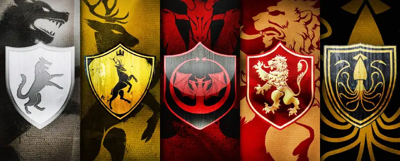 During the time of A Song of Ice and Fire in which A Game of Thrones: The Board Game is set, the following Houses are the principal players in the struggle for the Iron Throne.