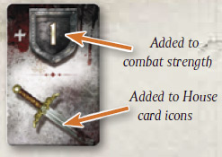 Each player then adds any Sword or Fortification icons on his Tides of Battle card to his House card (as if they were printed on his played House card).