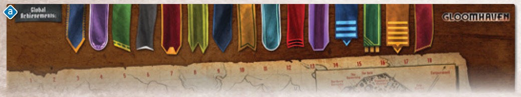 The campaign board is used to track the global progress of the game world. The locations, achievements, and prosperity tracked on the board apply globally to all parties playing in the world.