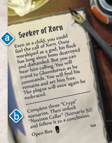 The game box includes a number of sealed boxes and envelopes, each designated with a symbol or letter. At certain times, the game will direct players to open one of these. If it contains materials for a new character class, that character class is now available for anyone starting a new character. If the envelope contains other contents, the contents will direct the players how to use them.