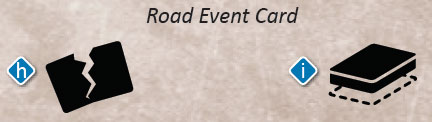 Icons directing players to either remove the event card from the game h or return it to the bottom of the corresponding event deck i after the outcome is resolved.