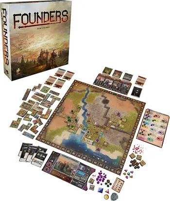 Founders of Gloomhaven is a game of collaborative building. Players must work together to build the more advanced resources required to deliver to prestige buildings, all while trying to maximize their own scores.