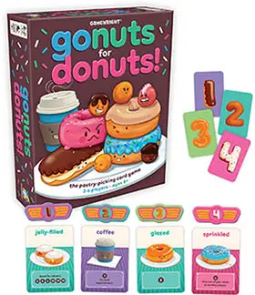 If two or more players pick the same donut, nobody gets it. Pick your donuts wisely and see if you can get the most points by the time all the donuts are gone!