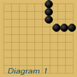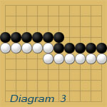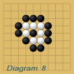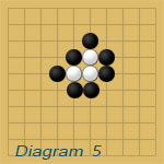 Zie diagram 6, er is nog één vrijheid over en zwart moet deze eerst vullen.