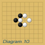 Om dergelijke situaties te voorkomen is er een bijkomende regel: als zwart een steen vangt zoals in diagram 11, dan kan wit deze niet meteen heroveren, maar moet wit ten minste een beurt wachten.