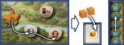 Place 1 Jade on each of the indicated spots and place the remaining ones in a general Jade supply on the square of the Jade action. You'll be able to collect Jade in the game to score Victory Points at the end of the game.