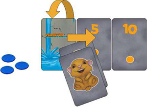 Your hamsters are your defense against the flood. Place hamsters in stacks on your dam cards. You do not need to place a hamster at every position on the dam. Place any special hamsters on top of their stack.