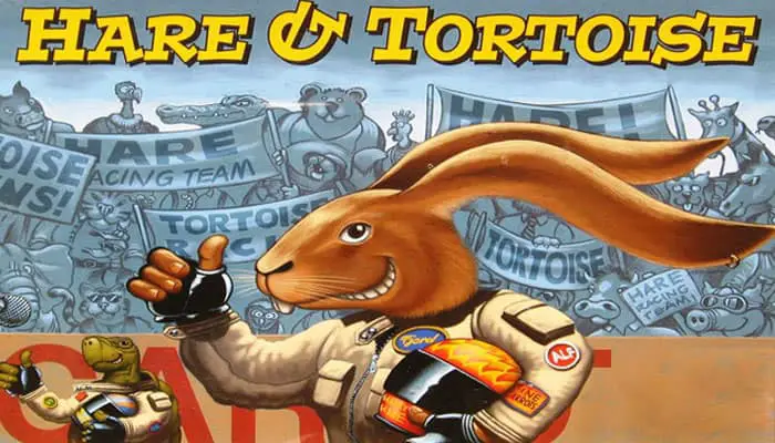 Each player takes 1 racing marker, 3 lettuce cards, and carrot cards worth 65 (2 "5", 1 each of "10", "15", and "30").