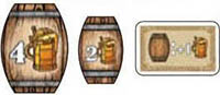 Add to that result 4 points for each large barrel and 2 points for each small barrel you have collected. If you have placed your barrel privilege card next to one of your completed privilege pairs, add 1 victory point to your score for each barrel you have collected.