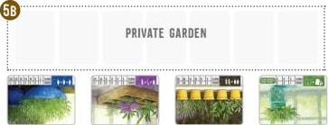 5 Designate an area for cards in the center for the Community Garden A and an area in front of each player as their Private Garden B. Each player places a Garden Marker in their color between their Private Garden and the Community Garden. C.