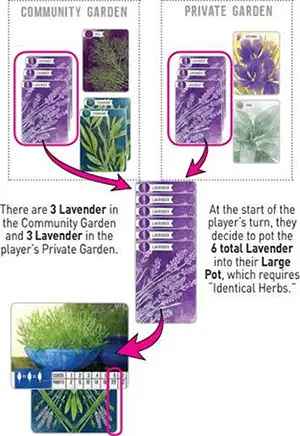 Players try to score the most victory points by collecting and potting herbs from the Community Garden and their Private Garden.