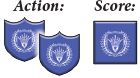 Faction Tokens: Two kinds-1 Score Token (square) for tracking Victory Points, and 2 Action Tokens (shield) for marking a chosen action during Action Selection.