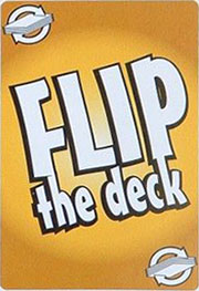 When a player plays a "FLIP THE DECK" card, the next player must pick up the whole draw pile and flip it upside down and then flip the whole discard pile upside down, so that the draw pile and discard pile are reversed.