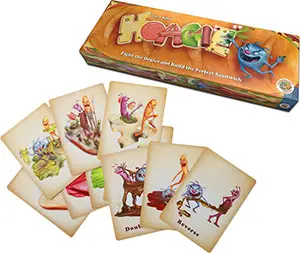 Playing Hoagie is simple; be the first to build the perfect sandwich while fouling your opponents ingredients with spoiler cards.