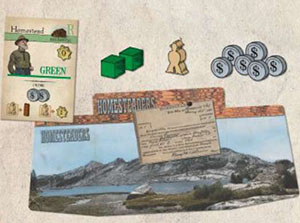In Homesteaders, players are settlers in the Old West, claiming land to develop into a town. The player who contributes the most to building that town into a city will have the city named after him and be declared the winner.