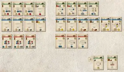 Sort the auction tiles into three piles: 'Auction 1', 'Auction 2' and 'Auction 3'. Order the 'Auction 1' by round number and place them in a pile, FACE UP, on the Auction 1 space. Players may look through this pile.