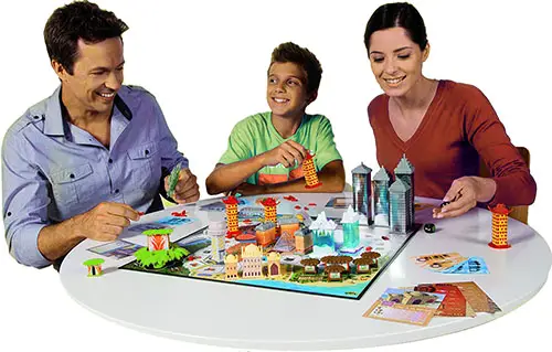 To put up a building(s) and recreational facilities, on your turn, you have to announce to the Bank what and where you want to build. If you can afford it, you may want to build more than one building on the same plot of land on that turn.