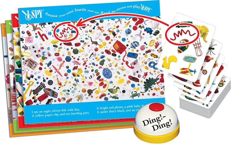 Try to be the first to see a match, shout out the name of the object and Ding! the bell. This ends the round of play.