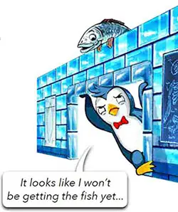 Note: Once stuck in the door, to get the fish you will have to move your penguin to the red line and go completely through the door in one turn. This means you cannot just flick your penguin through the rest of the door.