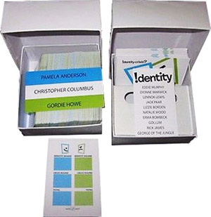 We have created 4 sets of identities on the name cards. Choose one set to play - purple, green, orange or blue. Have each team create a deck of 25 name cards by selecting identities in the chosen color.