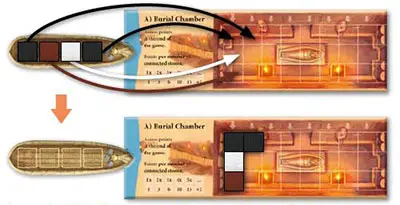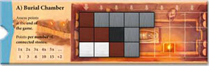 The burial chamber is unrestricted in the rightward direction. In other words, there can be as many columns as you like, even if you have to go to the end of the board. At the end of the game, points are earned as follows: Each area consisting of one stone or more than one connected stones of a single color yields a certain number of points depending on the number of stones.