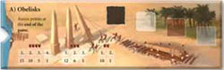 For the stones delivered here, the players earn points at the end of the game. Place each stone delivered here on the space matching your color. In that way, you will create a stacked tower of your stones. Each player will be building his or her own obelisk. Add up the points at the end of the game - with the tallest obelisk getting the most points, of course.