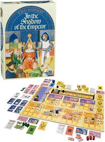 Germany in the late middle-ages: the players represent aristocratic families, trying to elevate their claims to the throne. To do this, players collect victory point cards by building cities, being promoted to elector, etc.