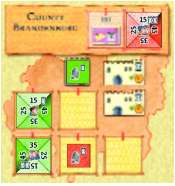 - Each player places his scoring marker on space 7 of the Thaler track in the dark area and his colored chip on space 7 of the Thaler track in the light area.