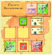 Green has 1 Baron (1 power point), 1 Couple (2 power points), 1 knight (1 power point) on a castle space, and 1 city (1 power point) for a total of 5 power points in Brandenburg , while Red has only 3 power points there.