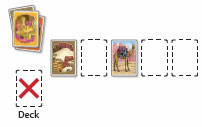 Take the first two cards from the deck and place them face up next to the camels. (There may well be 1 or 2 camels drawn). The market is now ready.