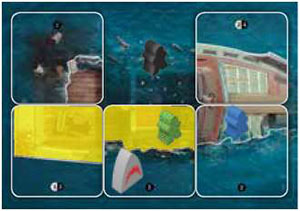 Note: If this is anyone's first time playing, show the Power Tokens to all players so they know what powers the Shark might use. During the game, the Power Tokens are kept secret from the Crew.