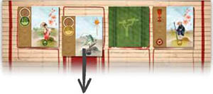 Example: The second Lesson card interests you and you decide to take it: Choose this column. At this point in the game, there is only one card per column. You therefore only take one Lesson card. Taking more cards requires more patience...